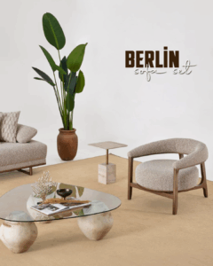 Berlin Koltuk Takımı, modern çizgilerin şehirli bir zarafetle buluştuğu özgün bir tasarıma sahiptir.